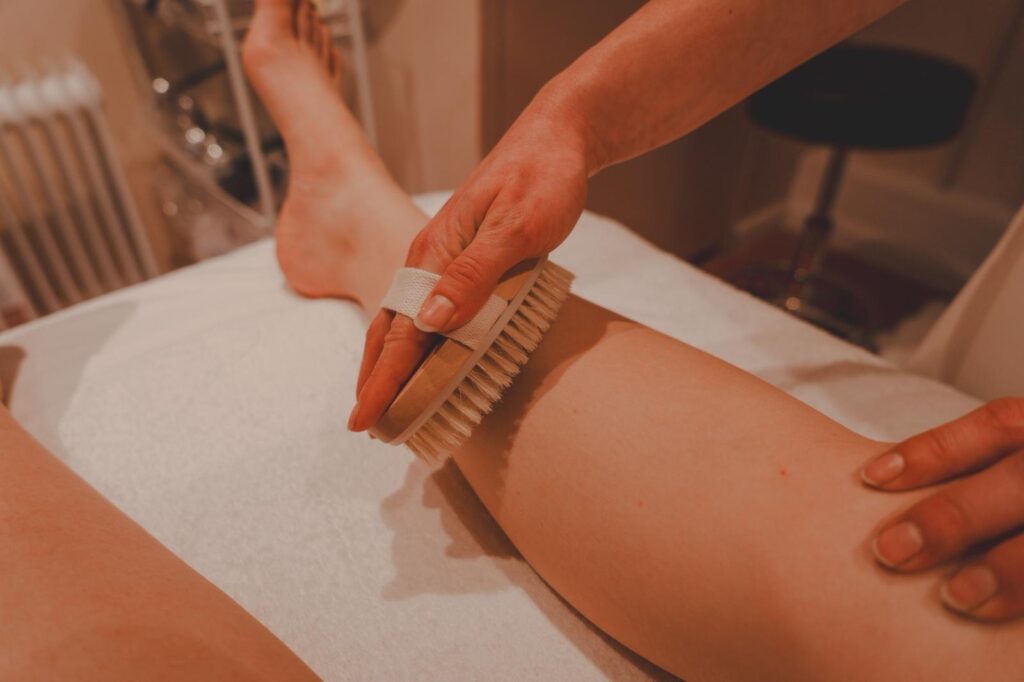 La technique consiste à masser le corps avec des brosses douces ou spéciales, ce qui active la circulation sanguine et lymphatique, élimine les cellules mortes et révèle une peau plus lisse et éclatante.